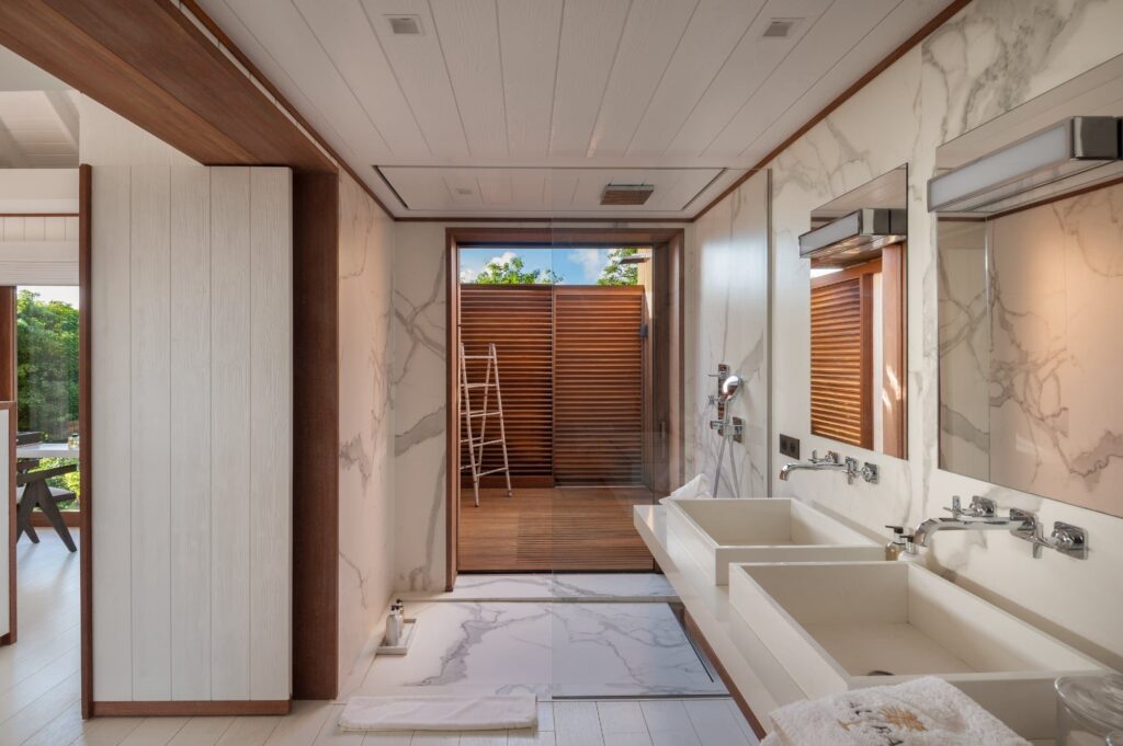 Open bathroom, Walk-in shower, Outside shower, Outside bath, Two sinks, Separate WC.